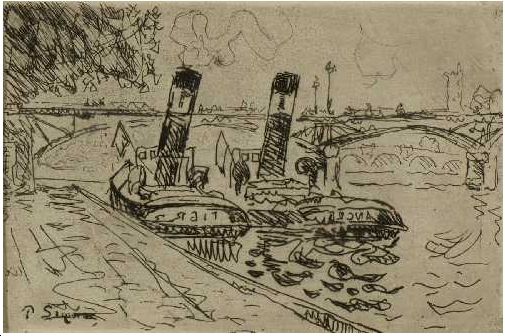 Paris: Le Pont des Arts avec Remorqueurs. 1927