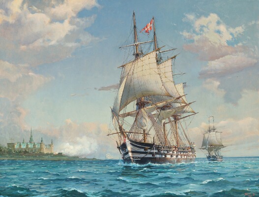 Linieskibet Dannebrog - Kongeflaget saluteres