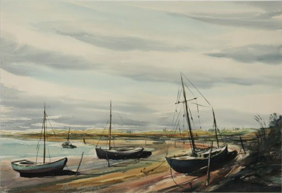 View of the Coast with Beached Sailboats
