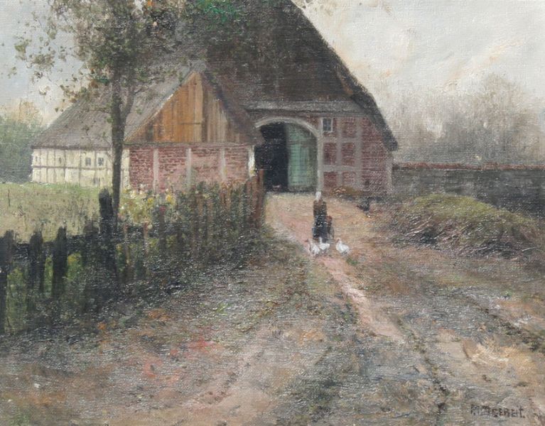 Country Landscape With Mother and Child, Geese, and Barn