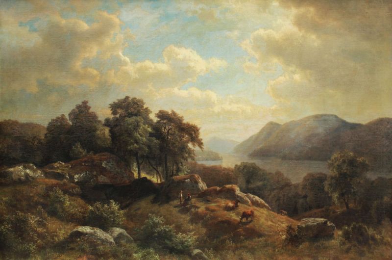 Panoramic Hudson River Landscape with Figures and Cows