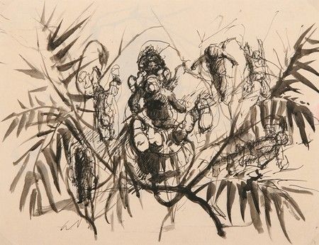Pen pen and Indian ink and wash on paper