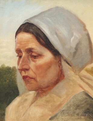 | Studiehoved en face af en gammel Kone med hvidt Hovedtøj. Arildsleje | |