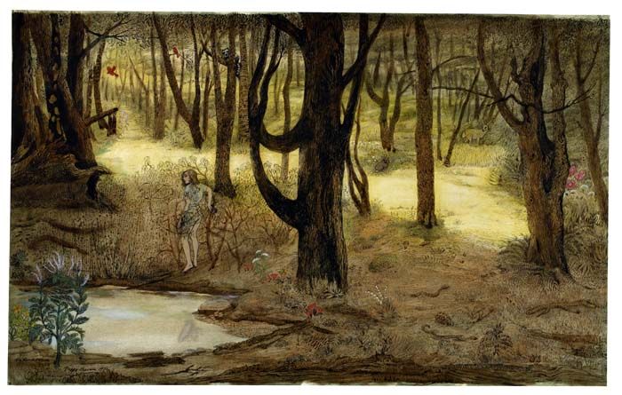 | Watercolor pen and ink and gouache on cream wove paper | |