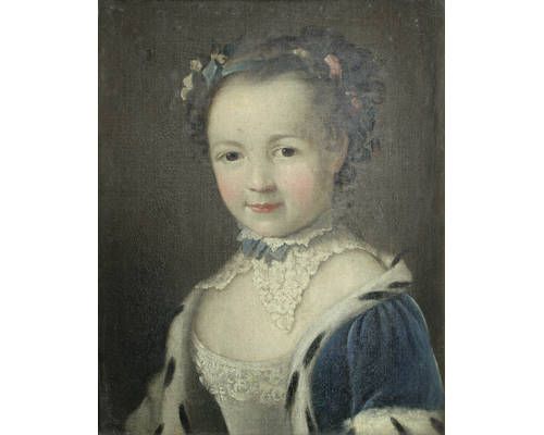 Portrait of a young lady, bust-length, in a blue cloak trimmed with ermine