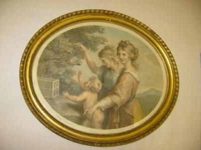 Engraving oval coloured ,gilt frame