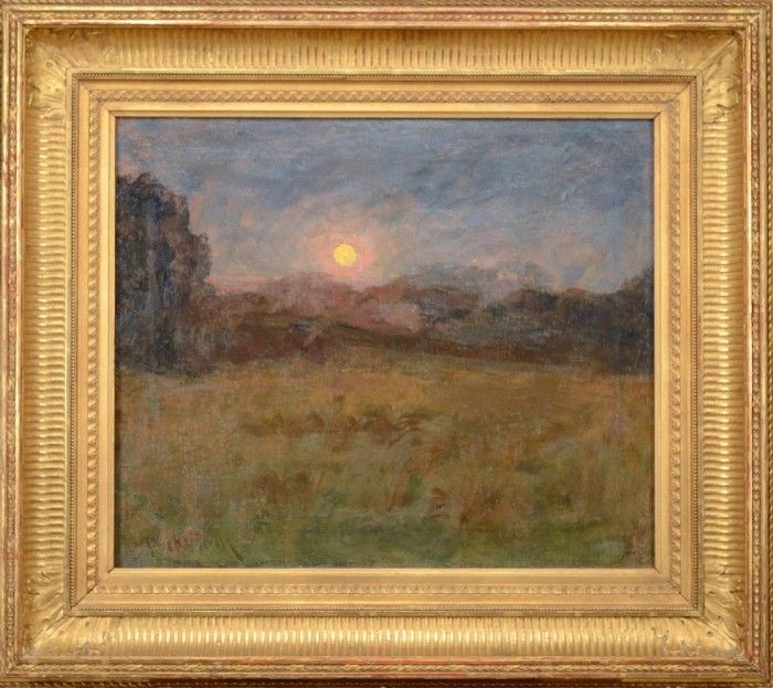 Landskap med solnedgång