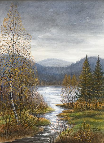 | Höstlandskap med träd och vattendrag från Höga Kusten Nordingrå Norrland. | |