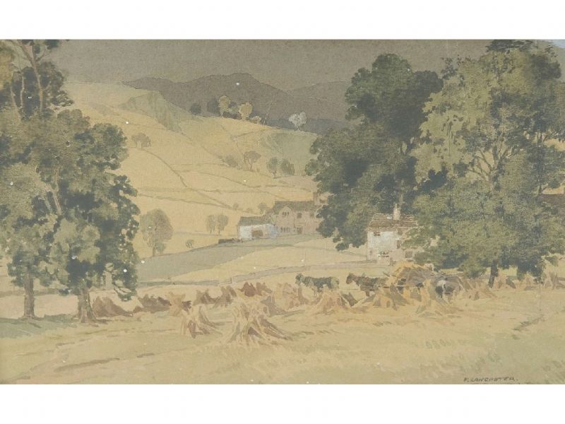 | Figures with Shire Horses carting Timber in a Lakeland Landscape | |