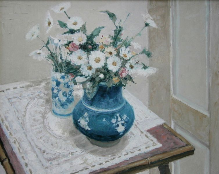 Flowers in a blue jug