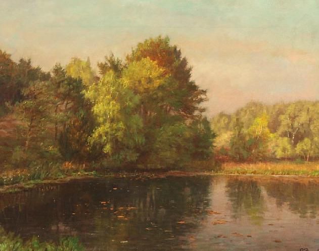 Autumn forest scape with a lake