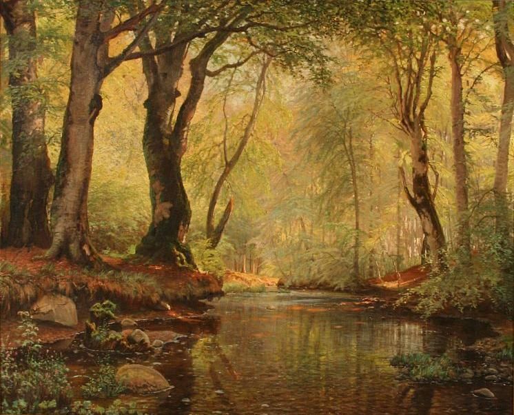 Serpentine stream in a spring forest.