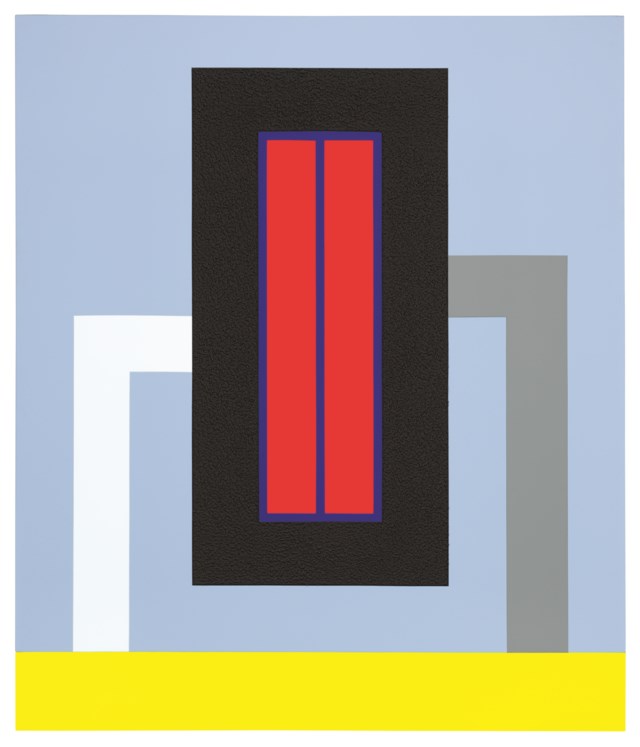 | Acrylic fluorescent acrylic and Roll-a-Tex on two joined canvases | |