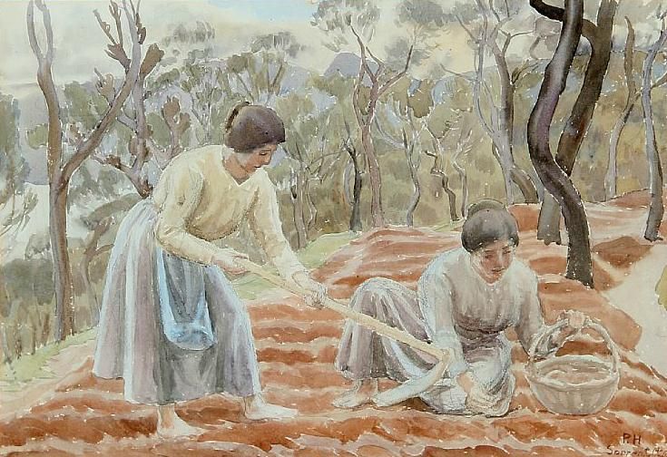 Two Italian peasant doing gardenwork in Sorrento, Italy