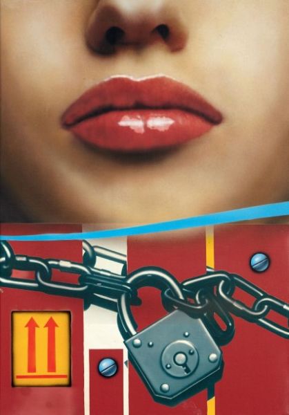 Visage de face cadenas/ 2 flèche sur fond jaune