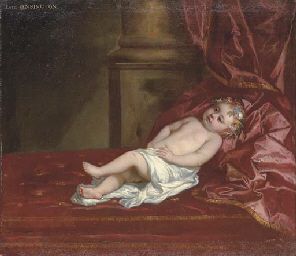 | Portrait of a child, identified as Lord Kensington, with a garland of flowers in his hair, reclining on a day bed | |