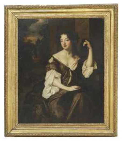 | Portrait of Louise de Kérouaille, Duchess of Portsmouth, seated three-quarter-length, in a brown silk dress with white chemise, | |