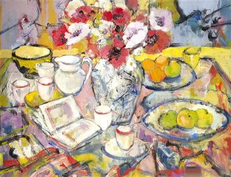 | STILL LIFE WITH YELLOW AND BLACK BOWL AND RED AND PINK POPPIES | |