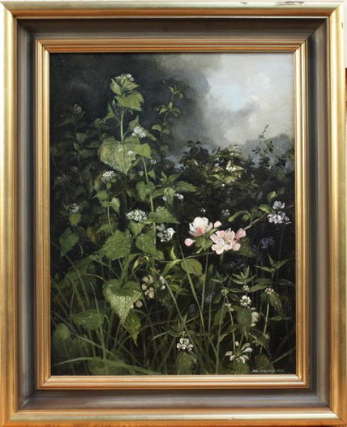 Study of Flowering Bramble and Nettle in a Hedgerow