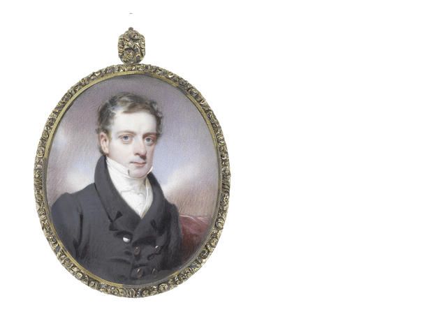 | A Gentleman, wearing black coat, white waistcoat, chemise, stock and cravat; together with a Gentleman, wearing blue double-brea | |