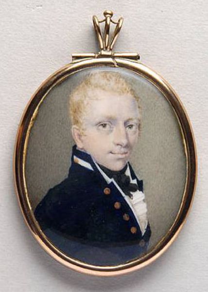 A young naval officer, having fair hair and wearing blue uniform, white shirt and black stock