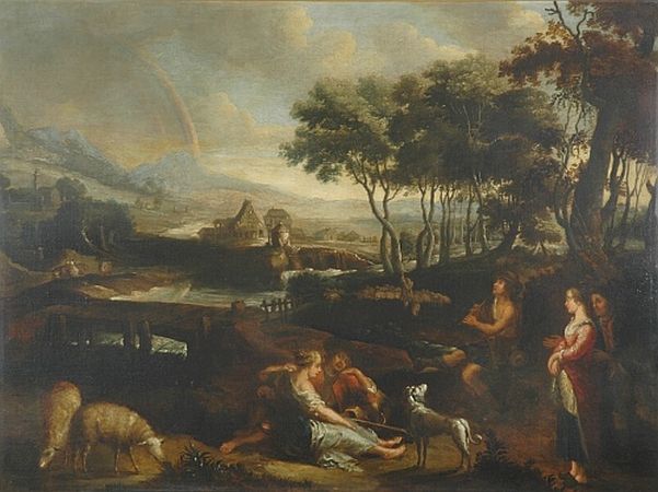 Pastoral Figures Near a Country Village