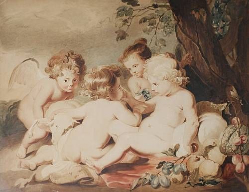 The education of Bacchus - the young Bacchus being waited upon by putti