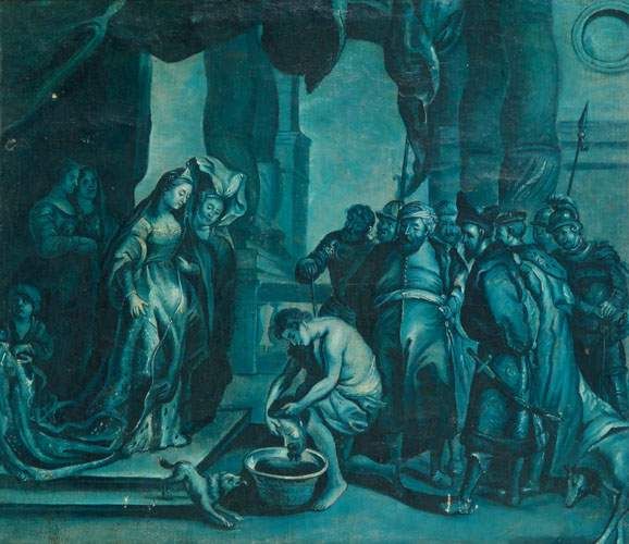 | Thomyris, reine des Scythes, faisant plonger la tête de Cyrus dans un vase rempli de sang | |
