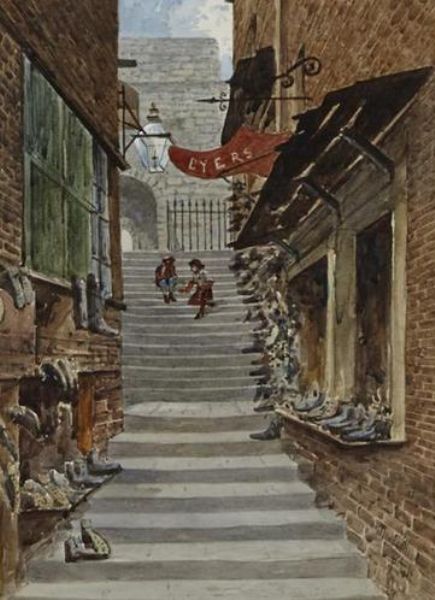 CHILDREN PLAYING ON THE STAIRCASE AT BYERS, NEWCASTLE