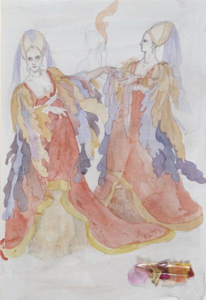 Costume design for three ladies,