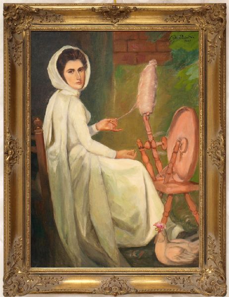 Portrait of Lady Hamilton at the Spinning Wheel, copy after an engraving by George Romney.