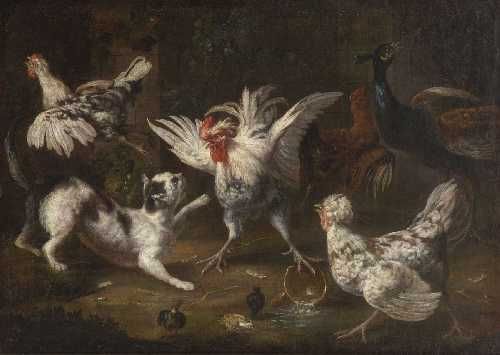 Geflügelhof mit Katze