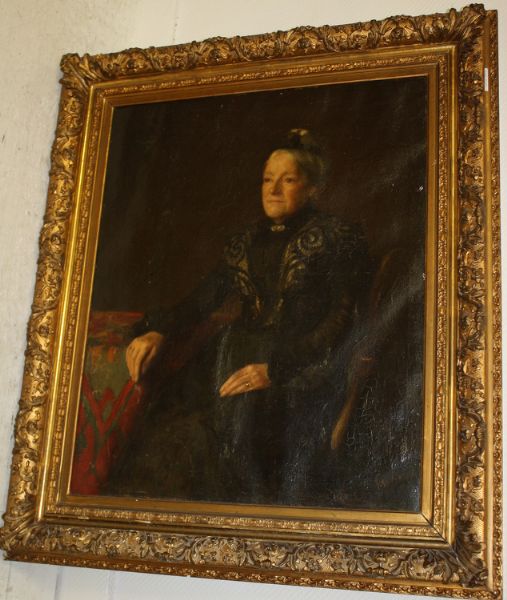 Portret van een dame zittend aan salontafel