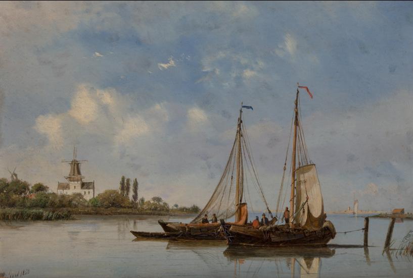 | Moored fishing boats with windmills in the background; Shipping in a light breeze (a pair) | |
