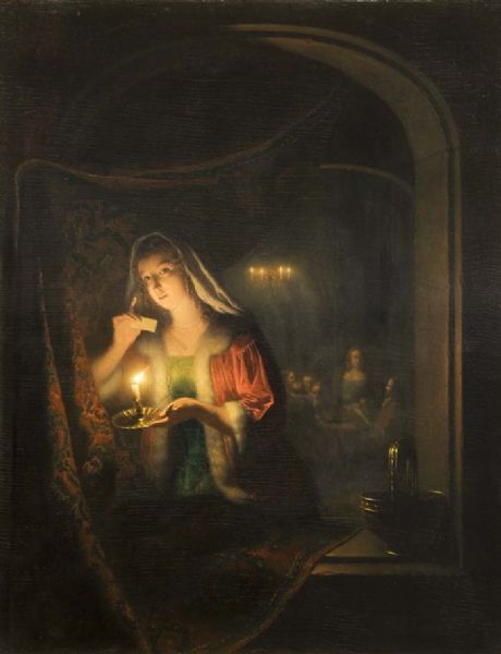 Mädchen mit Kerze am Fenster