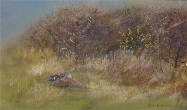 Cock Pheasant emerging from undergrowth