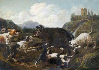 | Hounds chasing a wild boar / Caccia al cinghiale | |