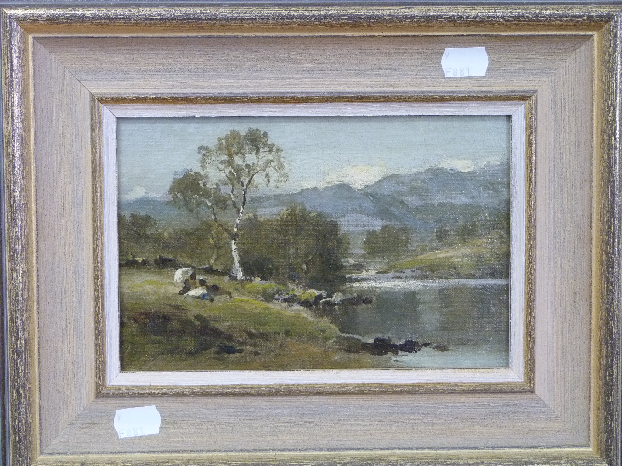 | Figures on a riverbank in a mountainous landscape | |