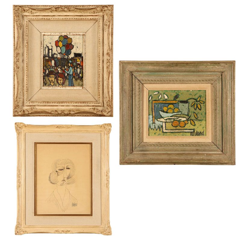 | Group of Three Works: Figures with Balloons, Still Life with Fruit and Portrait of a Woman | |