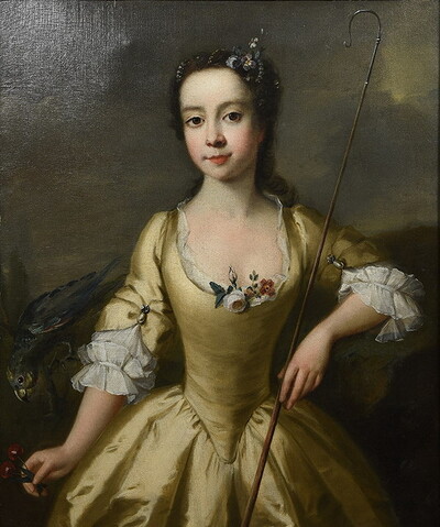 | Portrait of a Young Lady as a Shepherdess Feeding Cherries to a Parrot | |
