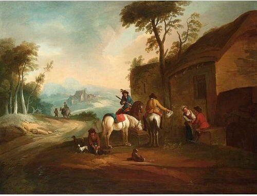 | AN ITALIANATE LANDSCAPE WITH HORSEMEN RESTING NEAR AN INN | |