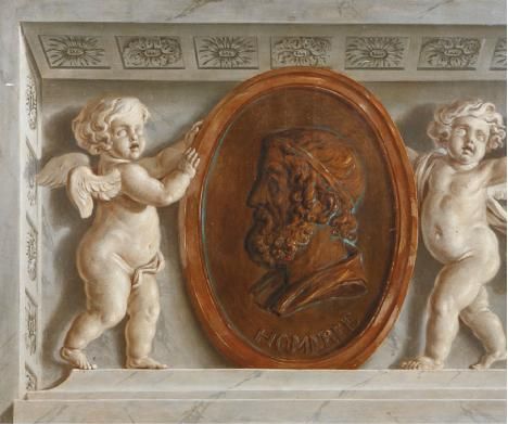 | Portrait en trompe-l'œil de Sapho tenu par des putti - " Portrait en trompe-l'œil d'Homère tenu par des putti " | |