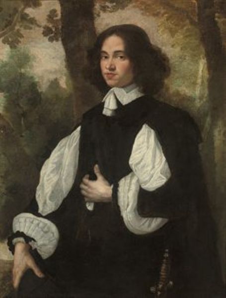 | Portrait of a gentleman, three-quarter-length, in a black slashed doublet and linen shirt, a landscape beyond | |
