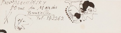 | Handdrawn invitation for exhibition in Bruxelles. Signed Alechinsky | |