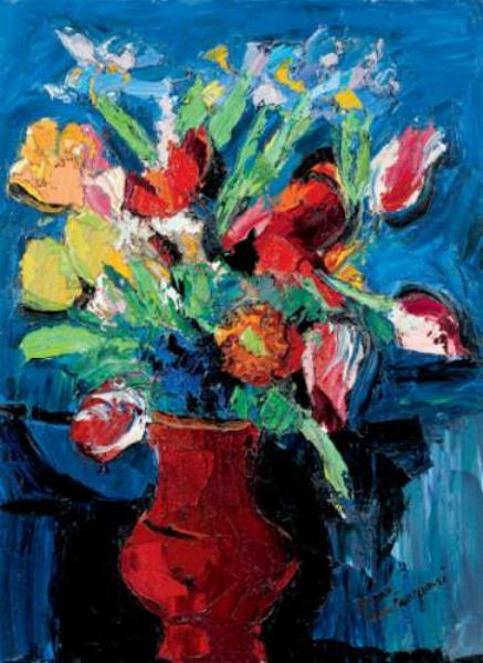 BOUQUET DE FLEURS - TULIPES AU VASE ROUGE