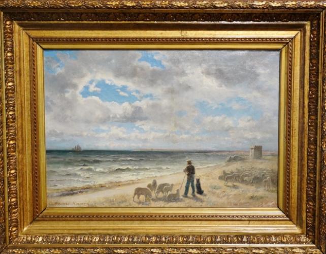 | Berger et son troupeau en bord de mer | |