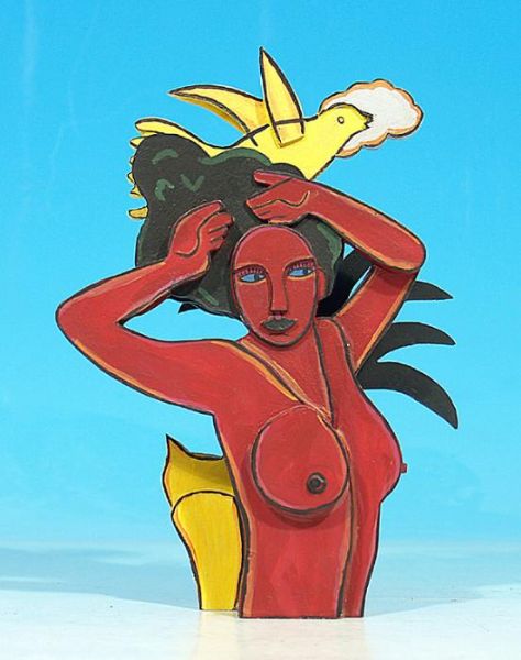 Weiblicher Halbakt mit Vogel und Katze.