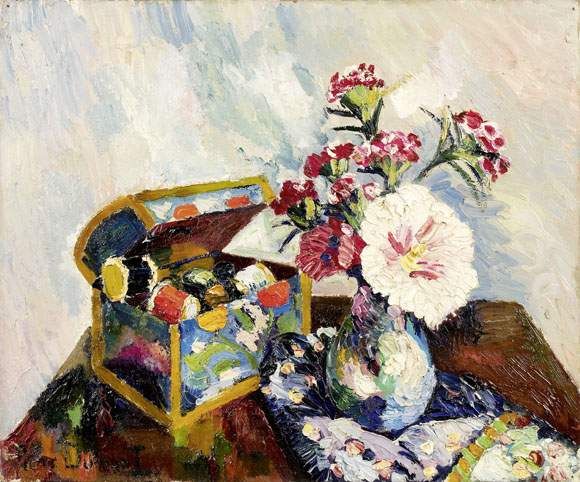 NATURE MORTE AU VASE DE FLEURS ET AU COFFRET