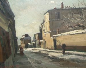 Figures in a city street in winter