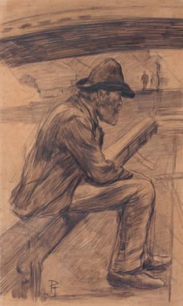 Vieil homme à la pipe, assis